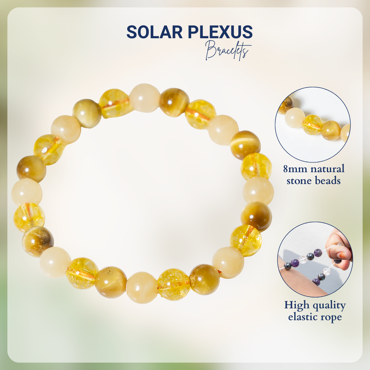8mm SOLAR PLEXUS Chakra Bracelet | Beaded Crystal Bracelets | Crystal Bracelets