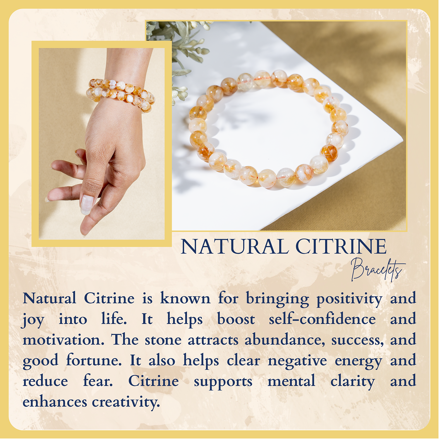 Invite positivity, abundance, and success into your life with this handmade Citrine Beaded Bracelet. Crafted with 8mm natural Citrine beads on a flexible elastic cord, this bracelet combines elegance, energy, and versatility. Perfect for daily wear, meditation, or gifting, it enhances both your style and your spirit.